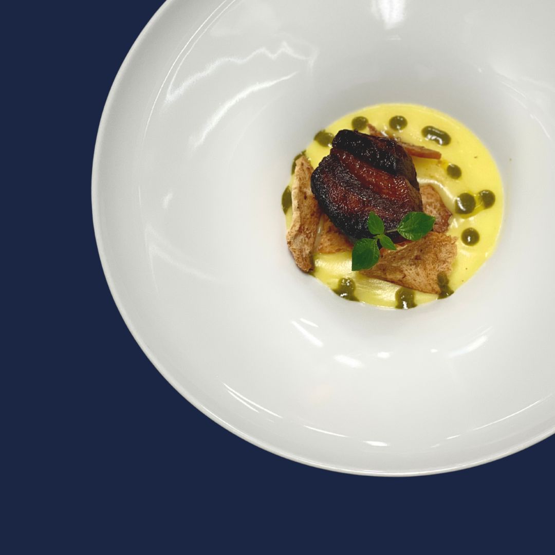 Un'interpretazione pugliese del classico roastbeef. La carne tenera e succosa Γ¨ esaltata da una riduzione di Primitivo e miele, che aggiunge una nota dolce e intensa alla base del piatto. Un fondo a base vegetale completa l'armonia dei sapori, portando in tavola l'essenza della Puglia in ogni boccone.